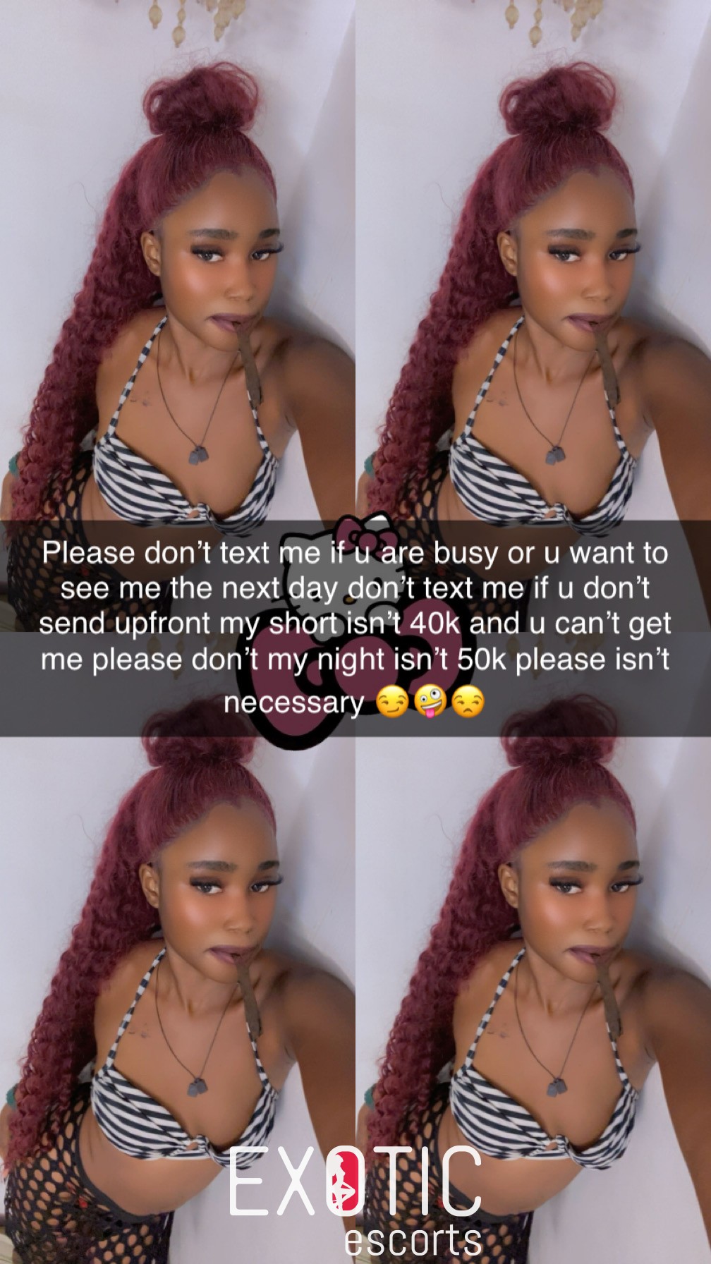 Hello gentlemen, owing to cases where clients have run off after getting service before payment, escorts now demand all tributes/tokens/previously agreed on fees before service.